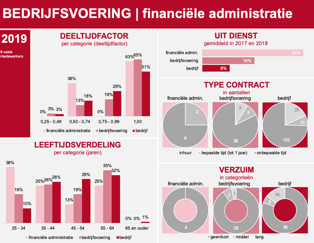 We starten met het in beeld brengen van het huidige personeelsbestand aan de hand van een analyse van een aantal cijfermatige aspecten. Denk hierbij aan leeftijdsopbouw, opleidingsniveau, type en duur van dienstverbanden, Relatieve SalarisPositie (RSP), contractvorm e.d. De uitkomsten geven een beeld van uw organisatie als geheel, en indien gewenst, ook op afdelings- of teamniveau. We bieden je hierbij 'tools' aan, waaronder sjablonen in Excel, waarin de informatie expliciet wordt gemaakt en keuzes dus niet meer alleen maar gebaseerd zijn op ‘onderbuikgevoel’.